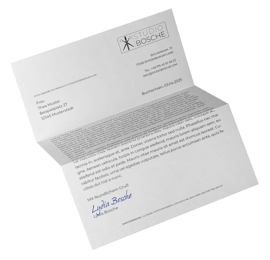 Auf Briefpapier und Firmenstempel wirkt das Logo ebenso klar und ruhig.